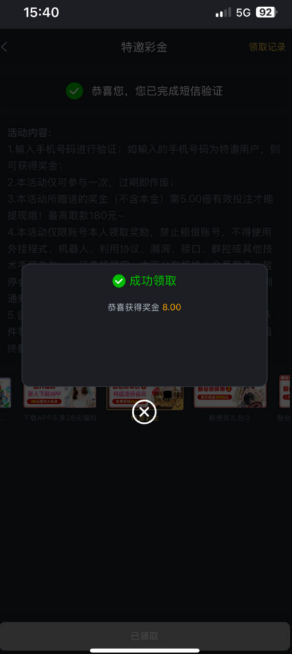 特邀送8块 后面充值30提了147 可以干