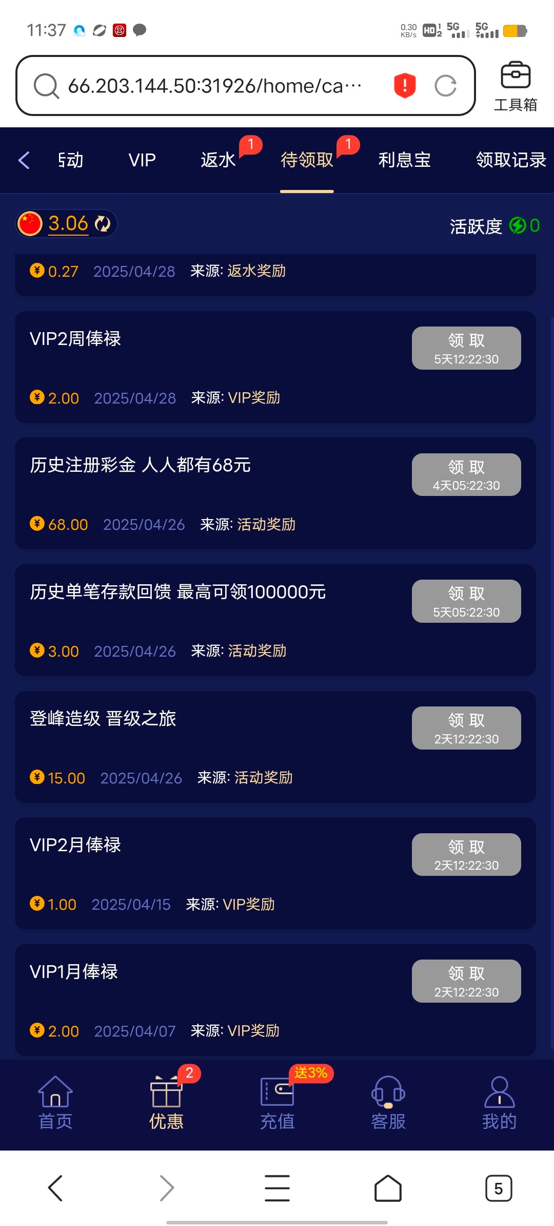 历史注册彩金
