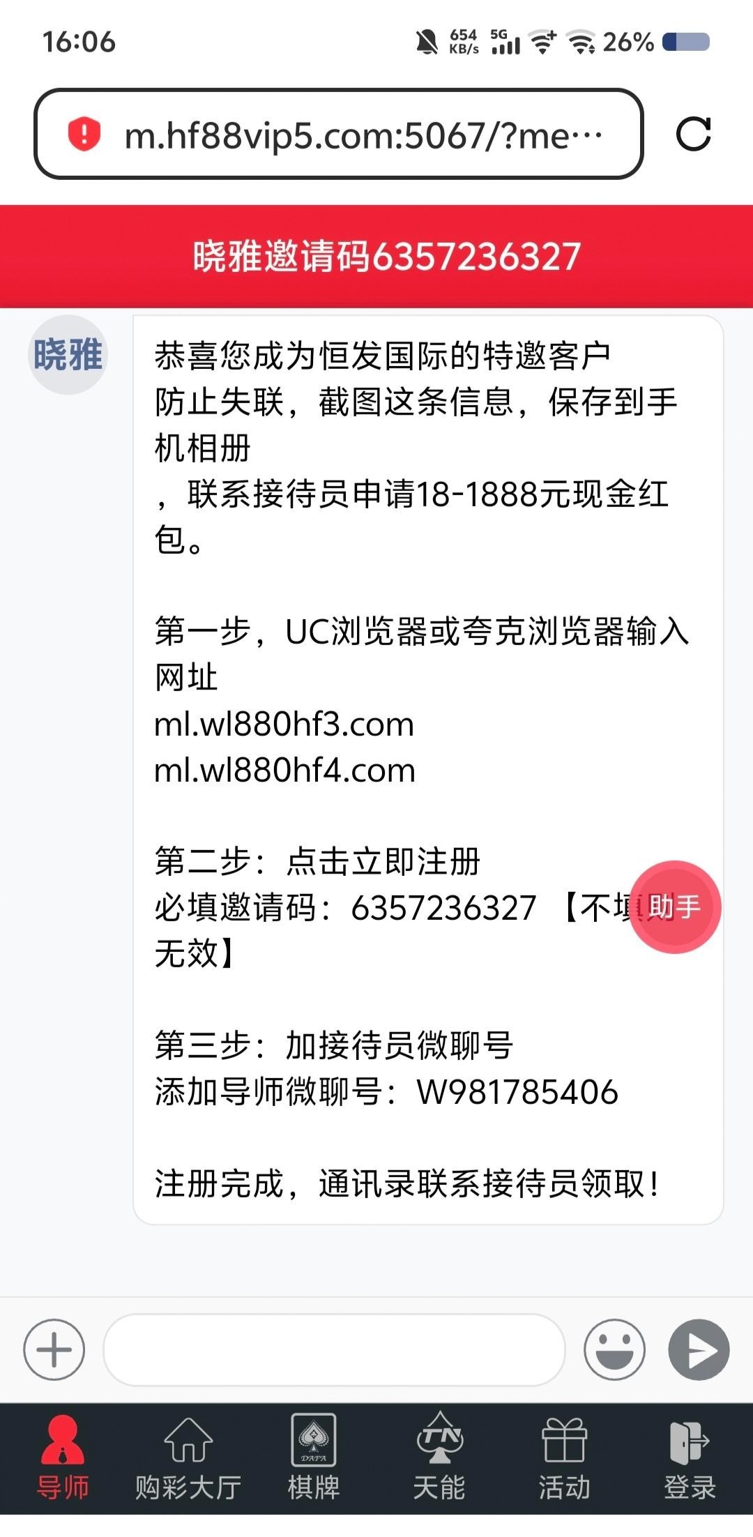 恒发找微聊客服碰瓷18 首次只能提卡 我没卡提输完了 链接和邀请码在图片