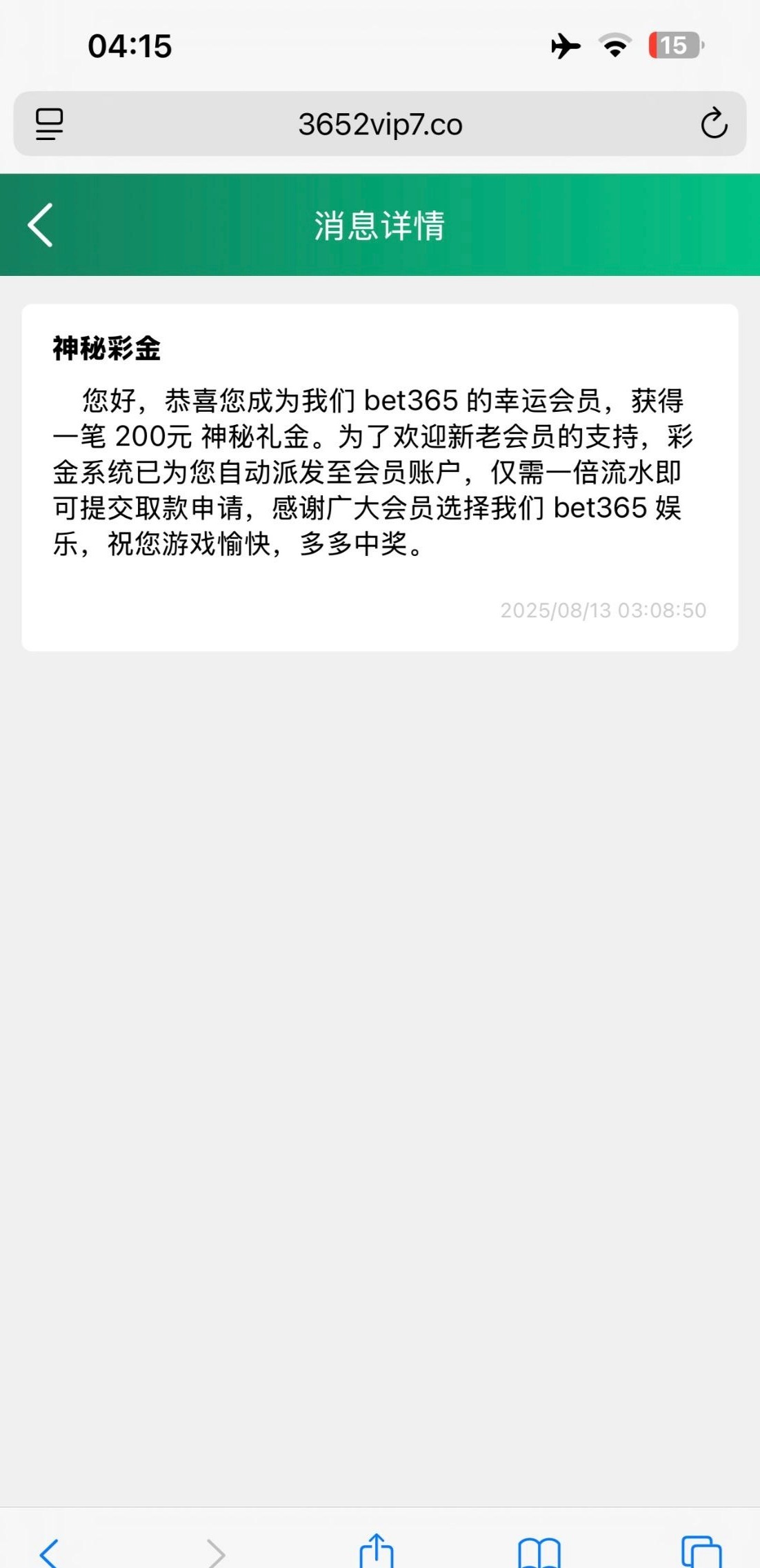 今无聊上去看了一下 有200神秘彩金 有号的上去看看 网址365e.com