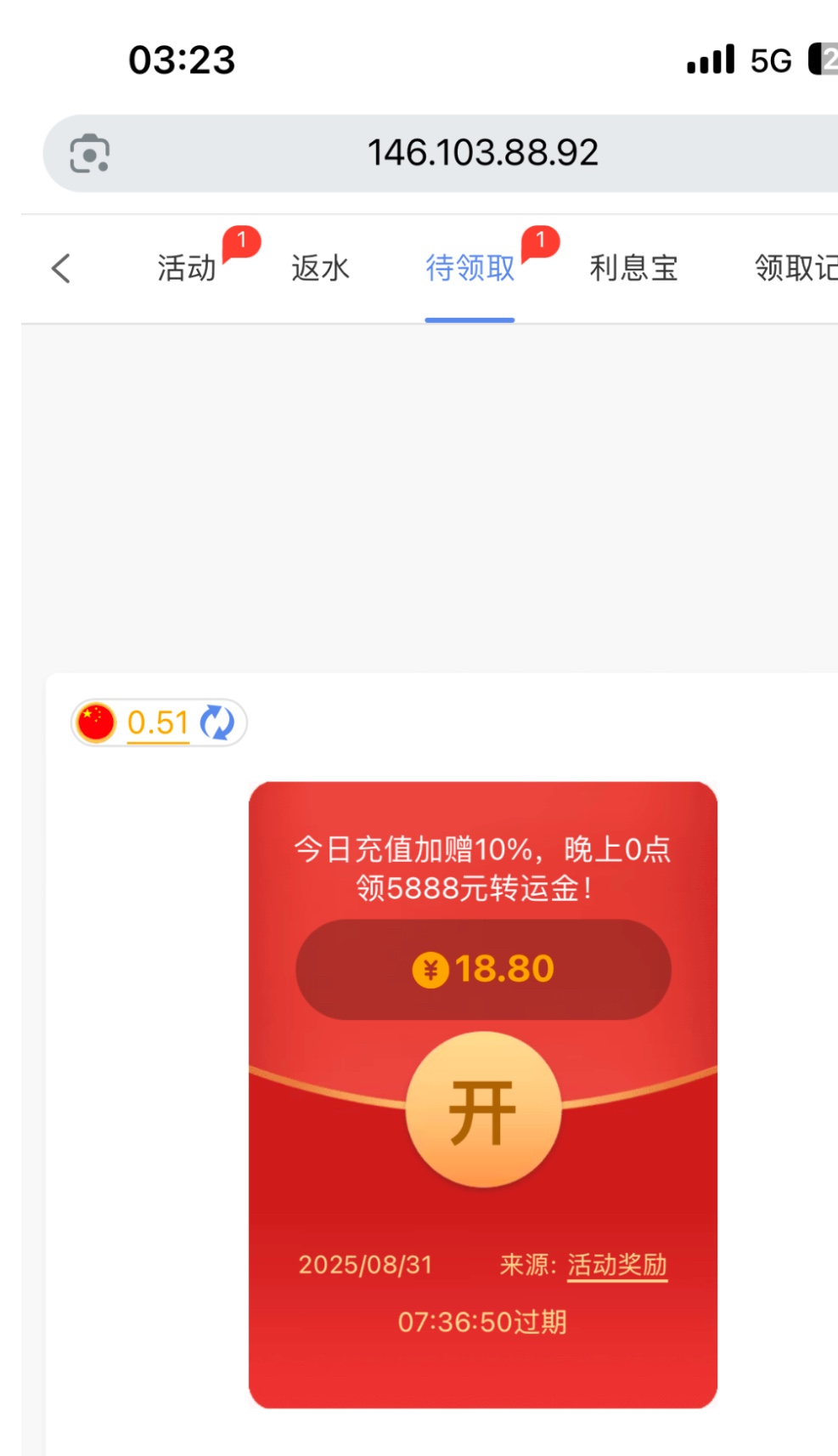 之前短信特邀注册的,然后充值过100,今天月初无聊登了好几个网站,发现这个网站有18.88,有号的去看一下,还出款了400