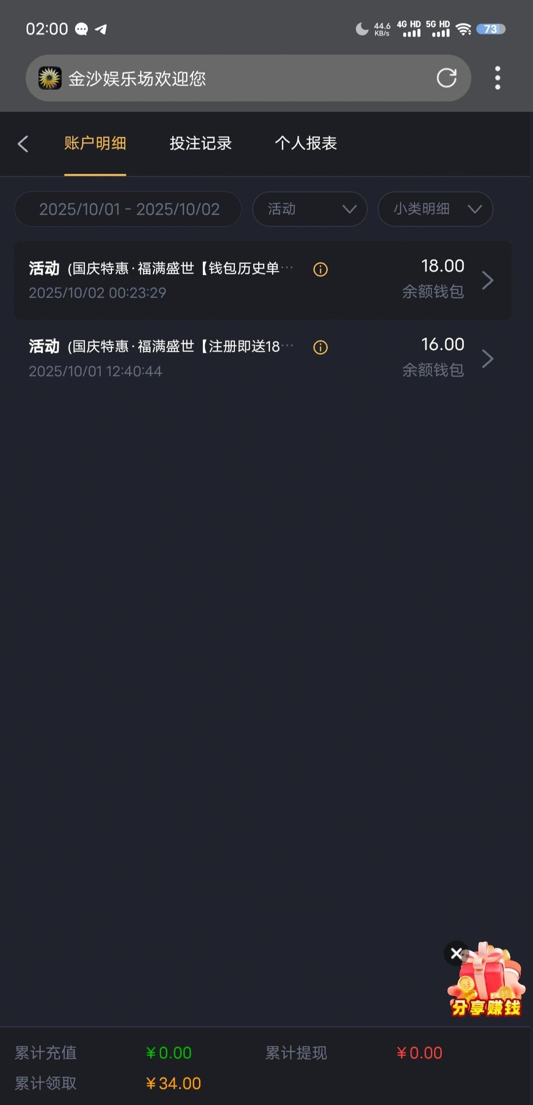 一个是国庆注册彩金,