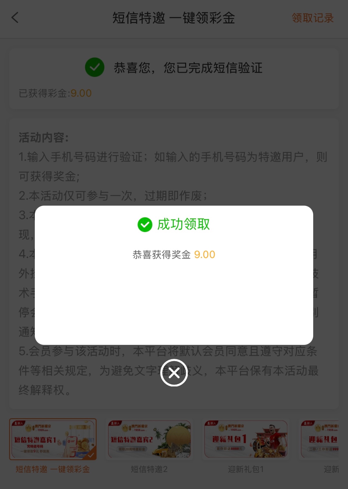 特邀碰瓷:新用户注册自助碰瓷特邀彩金,输入手机号验证通过秒送