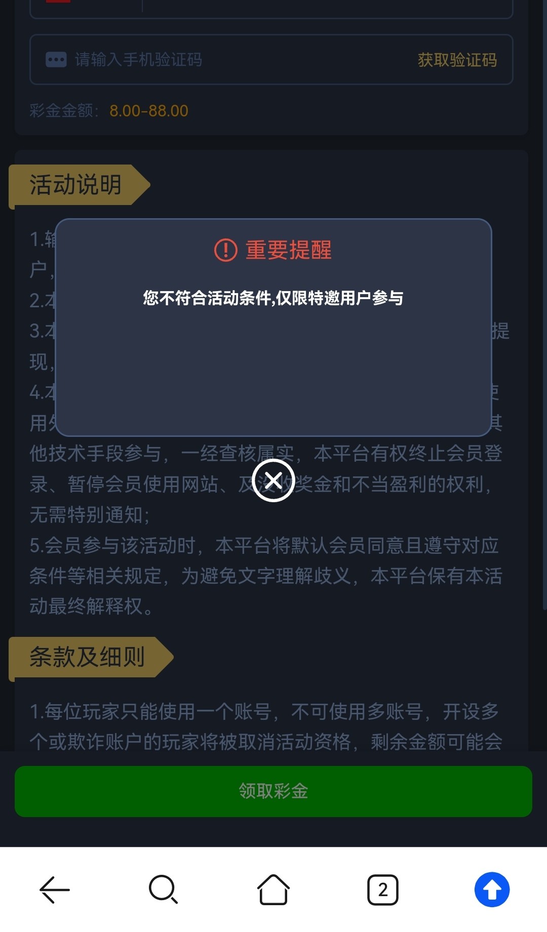 你不符合活动条件