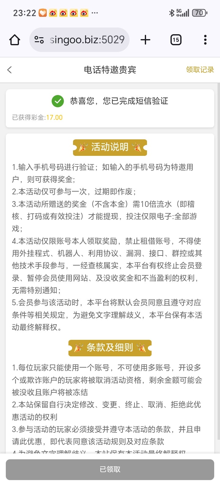 之前不是,刚去看领到了,四毛181次进胡77倍,遂拉六毛,流水刷够剩20没要,六毛244次未进免费,遂猝