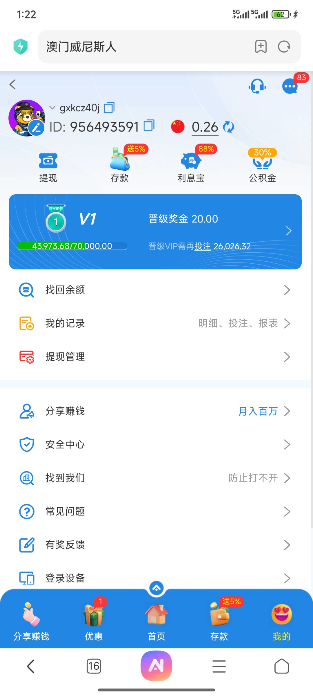【威尼斯人】回馈彩金