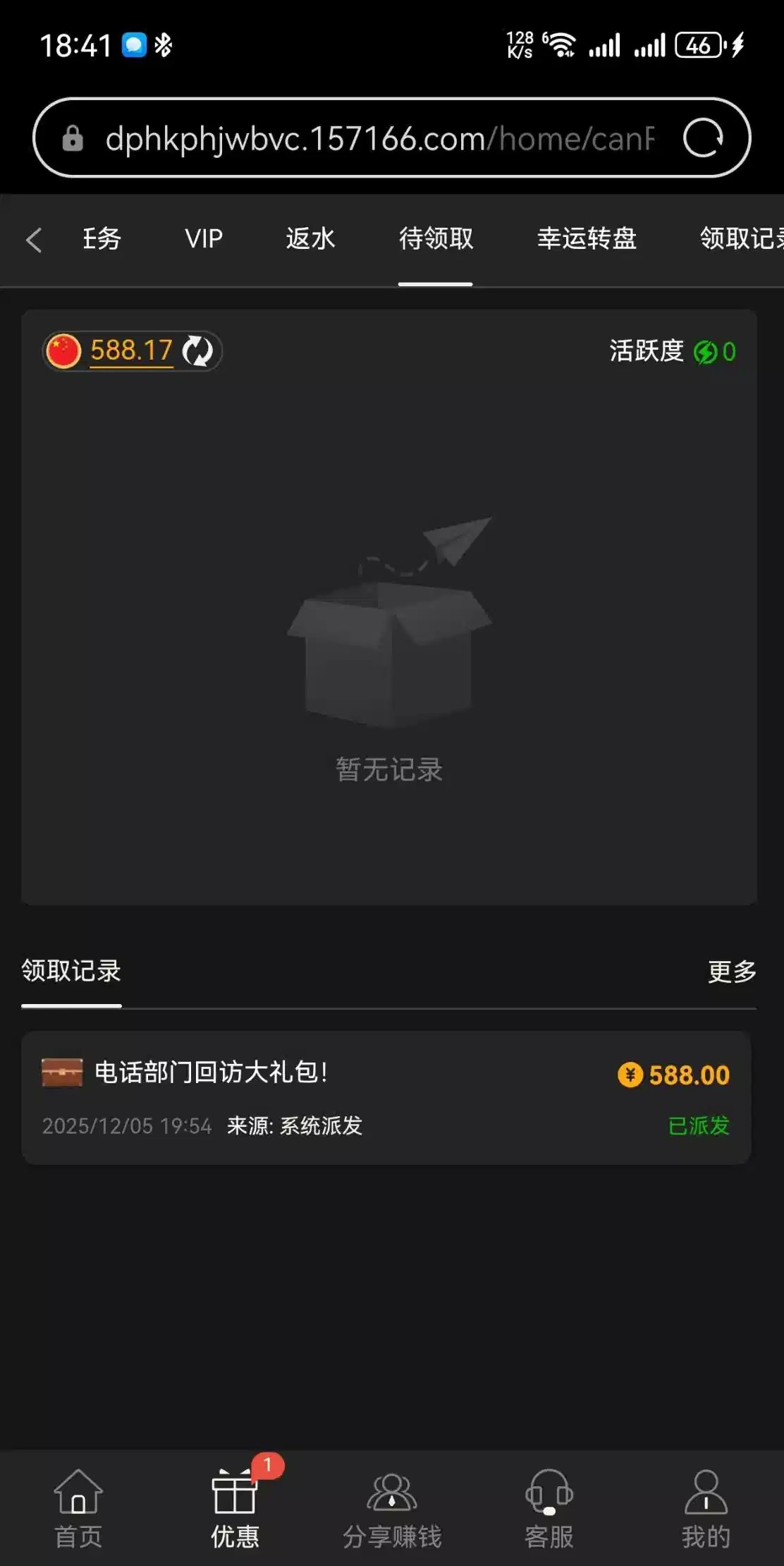 有充值过的,VIP有等级的上号去看看有没有大额彩金