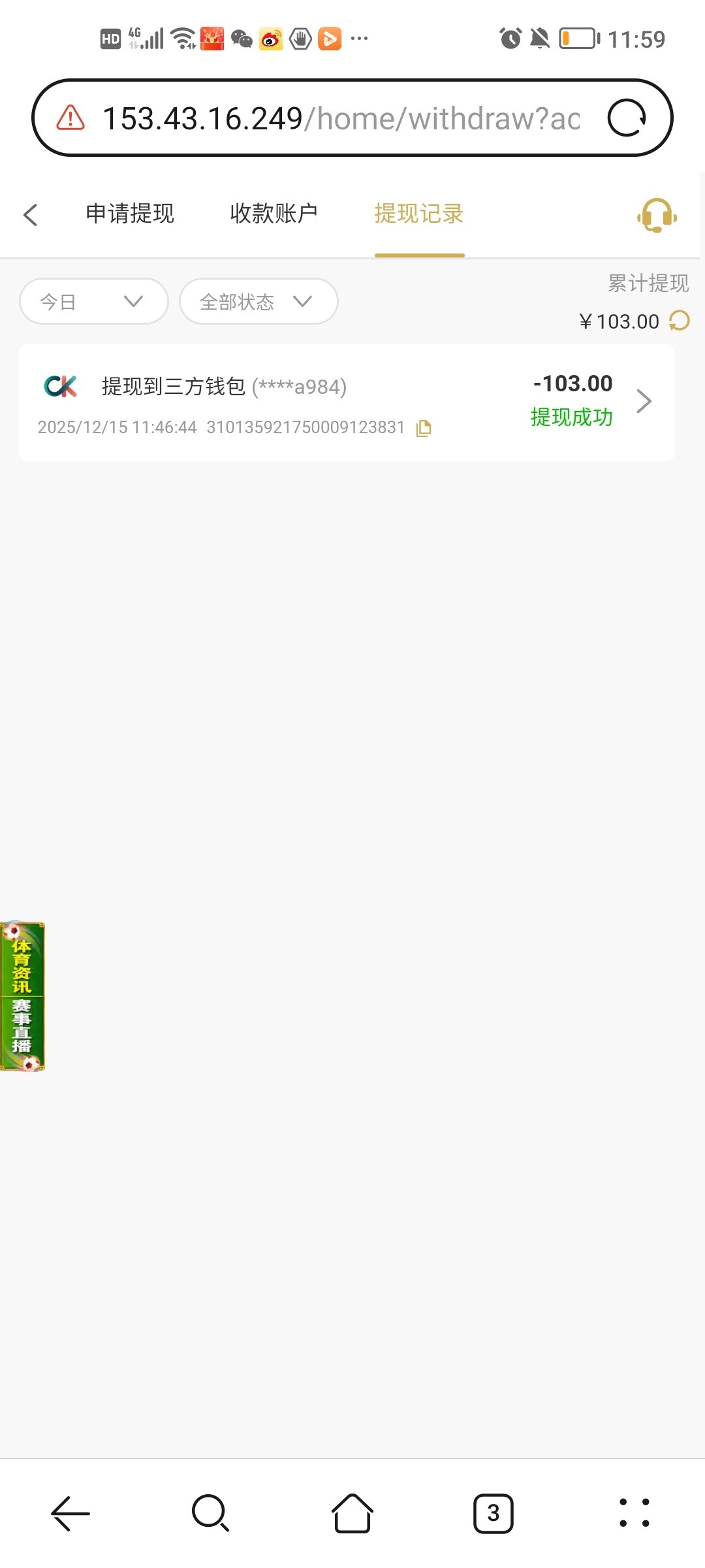 【232.com】电话回访彩金28,未充过值,之前有一次送34,没打出来,这一次送28,出款103,秒到账